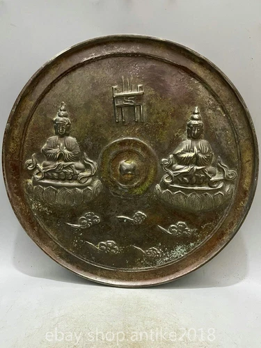15.2" Old Chinese Bronze Ware Dynasty Palace Buddha Bronze Mirror Statue