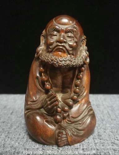 2.8" Old Chinese Buddhism Boxwood Carving Arhat Damo Buddha Small Sculpture