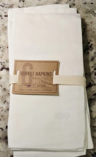 Set Of 3 (THREE) World Market Buffet Napkins White 100% Cotton NWT 20”x20” READ