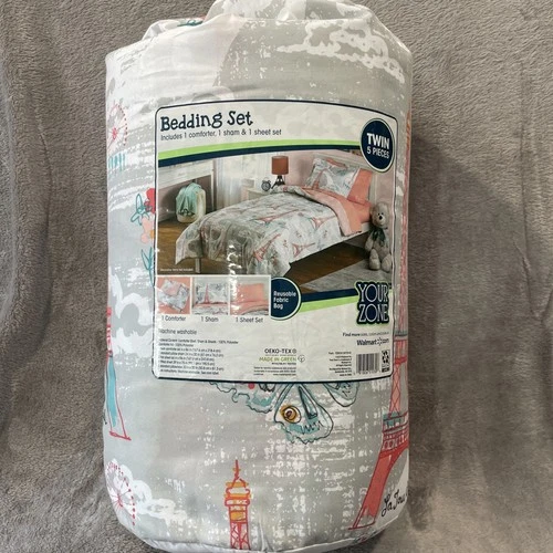 Your Zone Twin Paris Eiffel Butterfly Bedding Set 5 Piece Peach Gray Teal