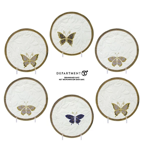 Department 56 GOLD BUTTERFLY 6.25" Dessert Plate Set 6 Embossed Leaves Flowers