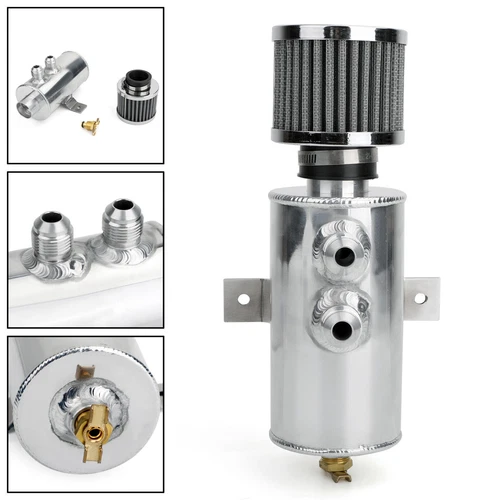 Aluminium Baffled Engine Oil Catch Can 2x AN10 Twin Port Breather Filter SIL ZE