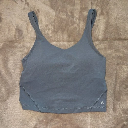 ACTA Pursue Your Best Women Small Slate Blue V-Neck Crop Top Built-in Bra Tank