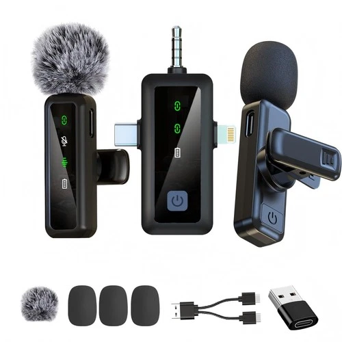 Wireless Lavalier Microphone 3-in-1, Mini Lapel Mic, 0, Black