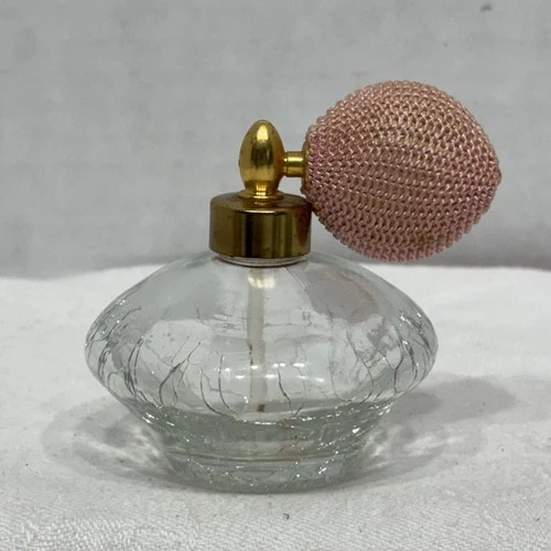 Vintage Clear Crackle Glass Perfume Atomizer Pink Mesh Bulb MCM Vanity