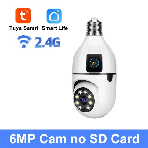 Tuya HD 6MP PTZ Wifi Seguridad Dual Lens Screen E27 Bulb Camera Color Night Visi