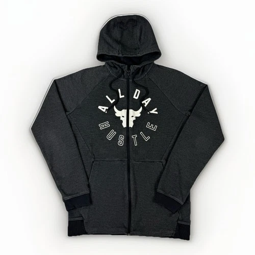 Under Armour Project Rock Hoodie Mens M All Day Hustle Bull Logo Full Zip