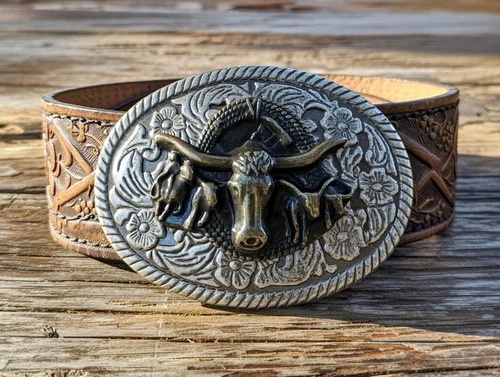 Vintage Bull Head Belt Unisex Handmade Unique Antique BullHead Belt Real Leather