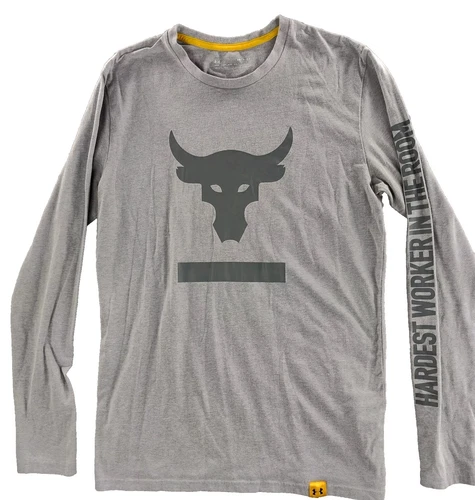 Project Rock Under Armour Shirt Mens Small Gray Long Sleeve Loose Stretch Bull