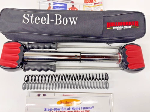 Bullworker Steel Bow 21" Fitness Exerciser Home Gym Set with 3 Springs, Case
