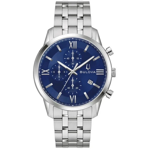 Bulova Sutton Chronograph Blue Dial Stainless Steel Men's 41mm Watch 96B476 NWT