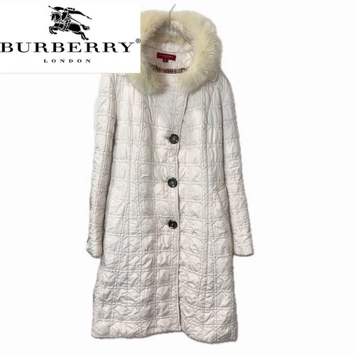 Burberry London Quilted Fur-Trim Coat White Used Women's Outerwear