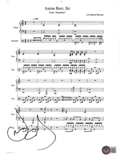 LESLIE ODOM JR. SIGNED HAMILTON PLAY AARON BURR, SIR MUSIC SHEET BECKETT COA