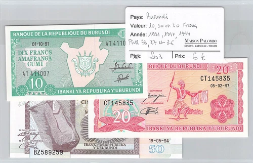 Burundi - Set Of Tickets 10, 20 And 50 Francs - Pick 33,27 And 36