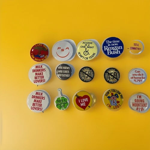 Vintage Button Pin Lot Advertising Political Reagan Bush Milk PSA Novelty Mixed