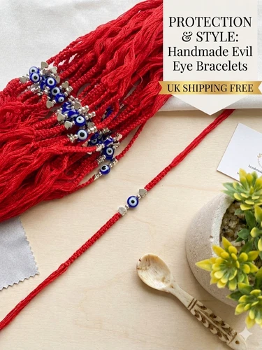 Pack of 12 Red Evil Eye Rakhi Bracelets Handmade Protection Thread Rakshabandhan