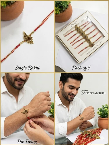 x 6-Mor Pankh Rakhi Radhe krishna feather Thread Rakhee Wristband Bracelet Sutra