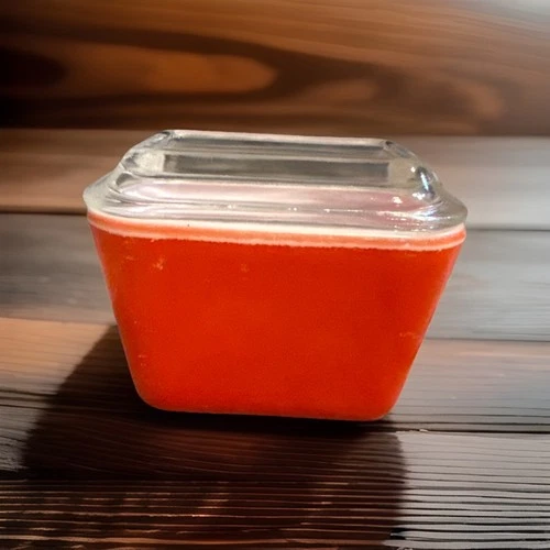 Vintage Red Refrigerator Glass Dish Pyrex 1950s Storage Or Butter Dish, 4” x 3