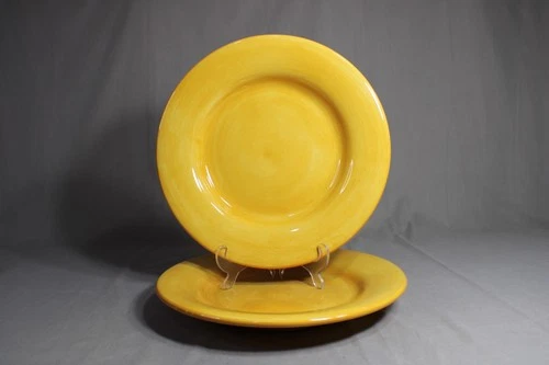 2 TABLETOPS UNLIMITED Espana Butterscotch 13" Dinner Plates, Hand Painted