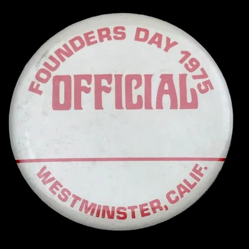 Westminster California Pin Button Vintage Official 1975 Founders Day