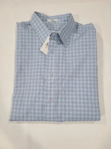 NWT Joseph & Feiss Large Cotton 80's 2 Ply Non Iron Button Up Checkered Blue