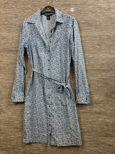 Brooks Brothers Shirt Dress Womens Size 4 Blue Floral Belted Button Front Cotton