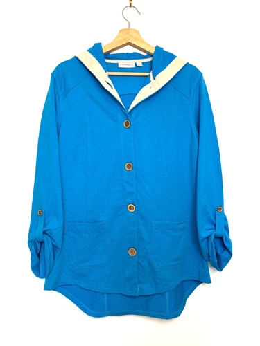 Susan Graver Weekend French Terry Roll Tab Sleeve Jacket Bright Blue Size XS