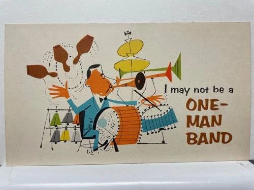 Cartoon One Man Band Roberson Motor Co Mexico MO Postcard 1950s 2c Ad