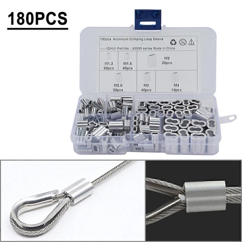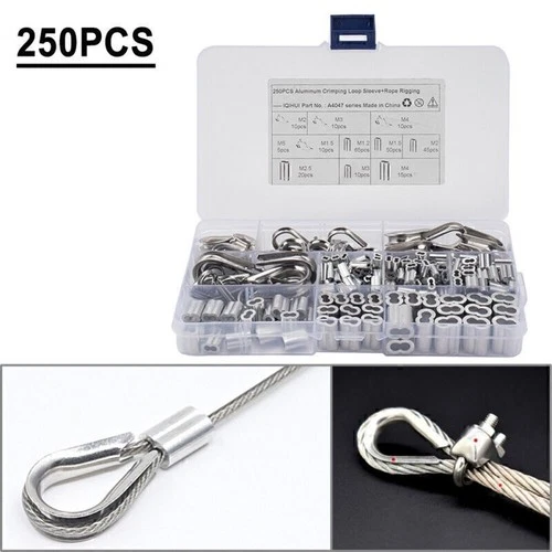 For Wire Rope Cable Thimbles 250x M2/3/4/5 Crimping Loop Sleeve Assortment Kit