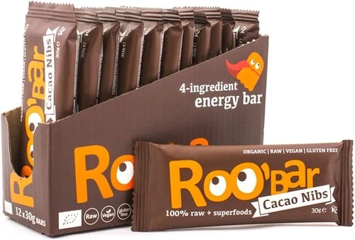 Roobar Cacao Nibs Raw Bar - Dairy & Gluten Free. 100% Organic, Vegan with Super