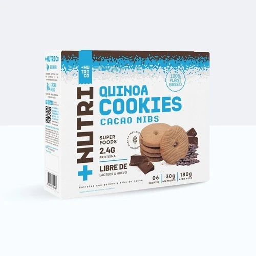 Nutrico Quinoa Cookies with Cacao Nibs 6-Pack Vegan Plant Protein Low Sugar