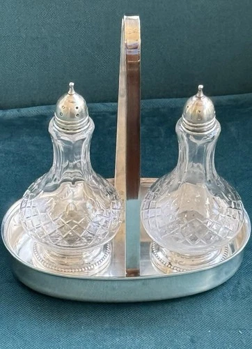 Oneida Silver Plated Cruet Caddy W/sterling Silver Salt & Pepper Set 5.25”