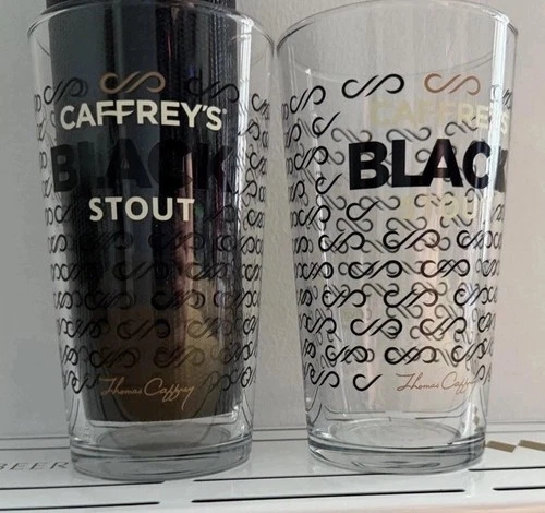 Pair Of Caffreys Black Stout Pint Glasses New Out Home Pub Bar Gift Decor