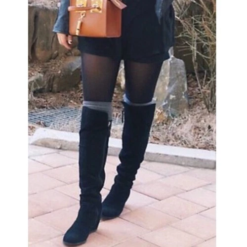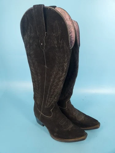 Rockem SZ 8.5 Black Suede Knee High Calf Snip Toe Cowgirl Boots