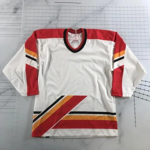 Vintage CCM Hockey Jersey Boys Large White Air-Knit Calgary Flames Colors