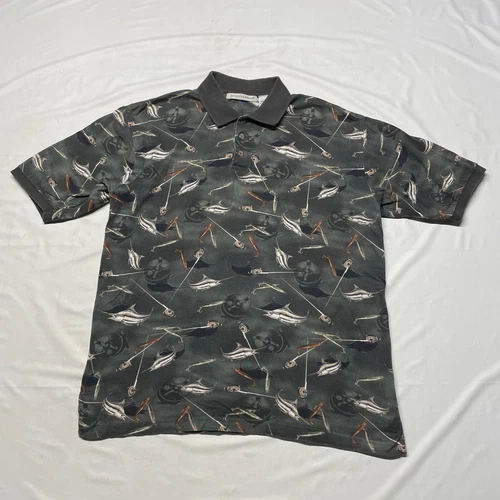 Vintage Nautical Polo T-Shirt Mens Small Swordfish Fishing Rod Angler Art Design