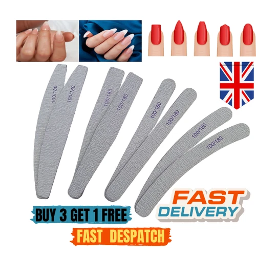 Nail Files 100/180 Grit Professional Quality File Moon/Curved/Diamond Buffer UK
