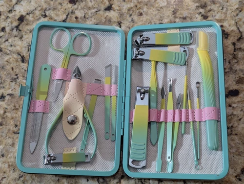 18pc Professional Nail Clippers Kit with Case Nailcare Pink Yellow Green