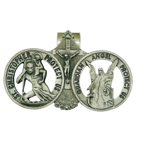 Vintage Visor CAMCO Pewter St Christopher Guardian Angel or Letter Clip 3"
