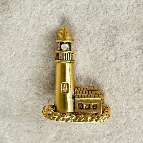 Vintage Signed CAMCO Gold Tone Lighthouse Brooch Pin w/ Rhinestone Light
