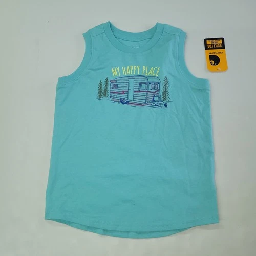 Carhartt Kids Angel Blue Tank Top My Happy Place Camper Graphic Youth 4 New
