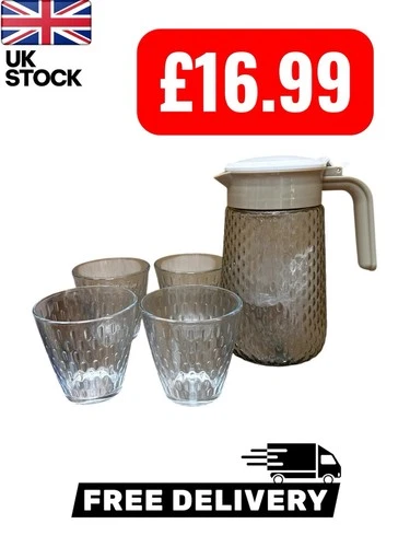 Clear Jug with 4 Glass Set with Lid for Juice Water for Picnic Camping Home Use
