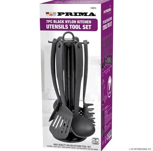 7PC NYLON KITCHEN UTENSIL SET STAND COOKING TOOL CAMPING FOOD BLACK NON STICK