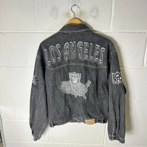 Vintage Los Angeles Raiders Jacket Mens Medium Grey Campri Denim Oakland NFL 90s
