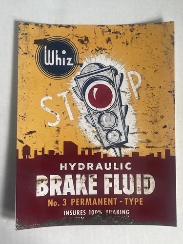 Whiz Stop Hydrologic Brake Fluid Paper 8.5x11 Vintage Can Sign Quart Reprint