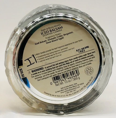 1 X 14.5 oz BROKEN Bath Body Works ICED BALSAM 3-Wick Large Candle I1