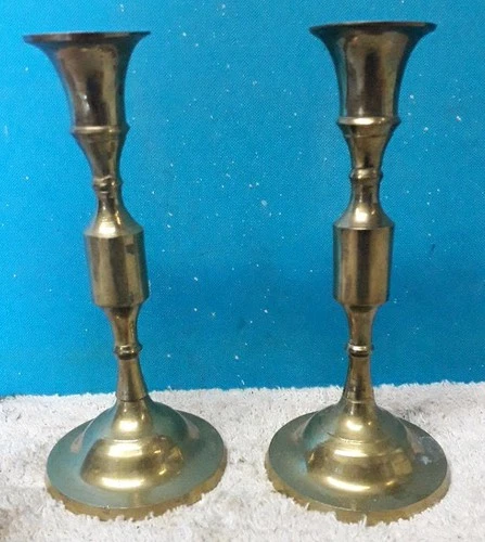 Vintage Pair Of Brass Candle Stick Holders Made In India Gstick