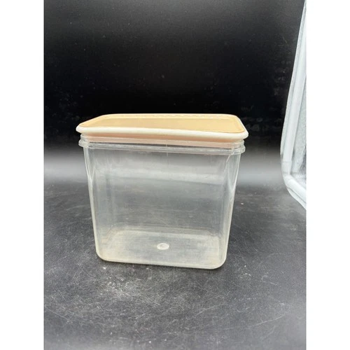 Vntg Clear Plastic Kitchen Canister Tan Lid Rectangular Storage Made Hong Kong