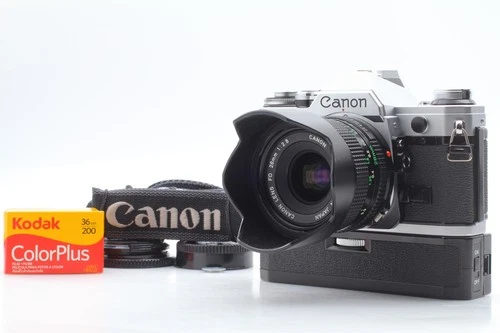 w/ Hood Winder [Top MINT] Canon AE-1 SLR 35mm Film Camera FD NFD 28mm f2.8 JAPAN