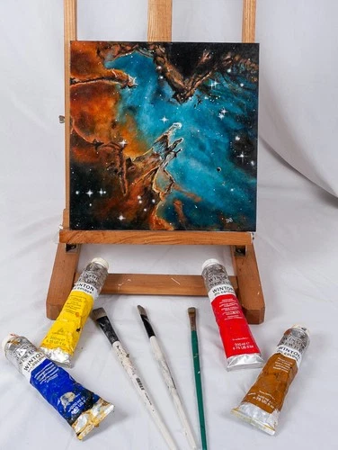 Original New Messier 16 nebula space art Oil painting 12" x 12 canvas board.